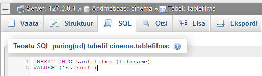 Теперь, мы проверим что мы можем обновлять столбец, для етого мы добавим еще одно название фмльма но с ошибкой
